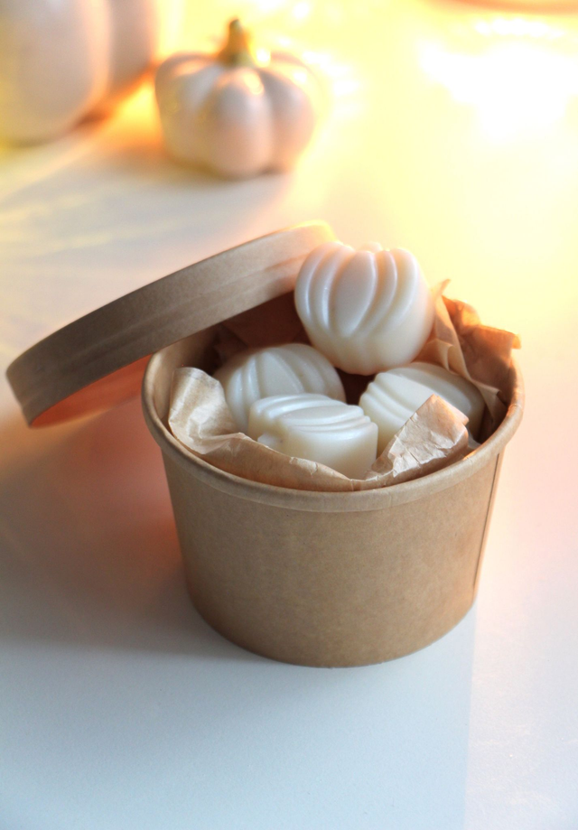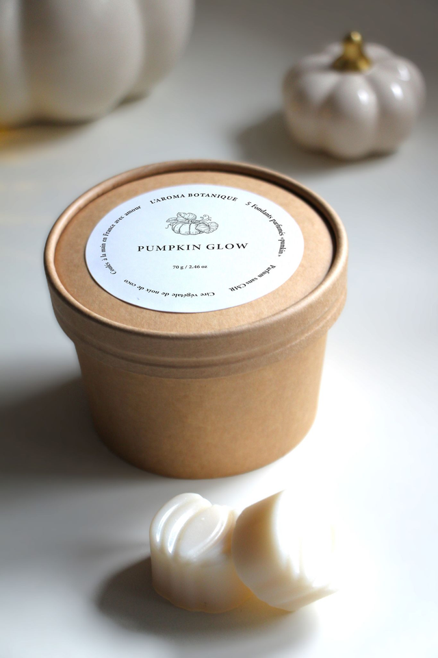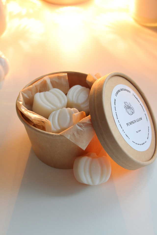Box de 5 fondants parfumés "Pumkin", au doux parfum épicé et gourmand, mêlant citrouille, ambre et vanille boisée."