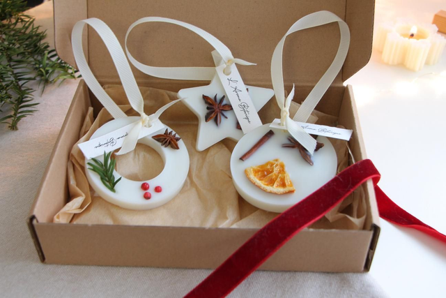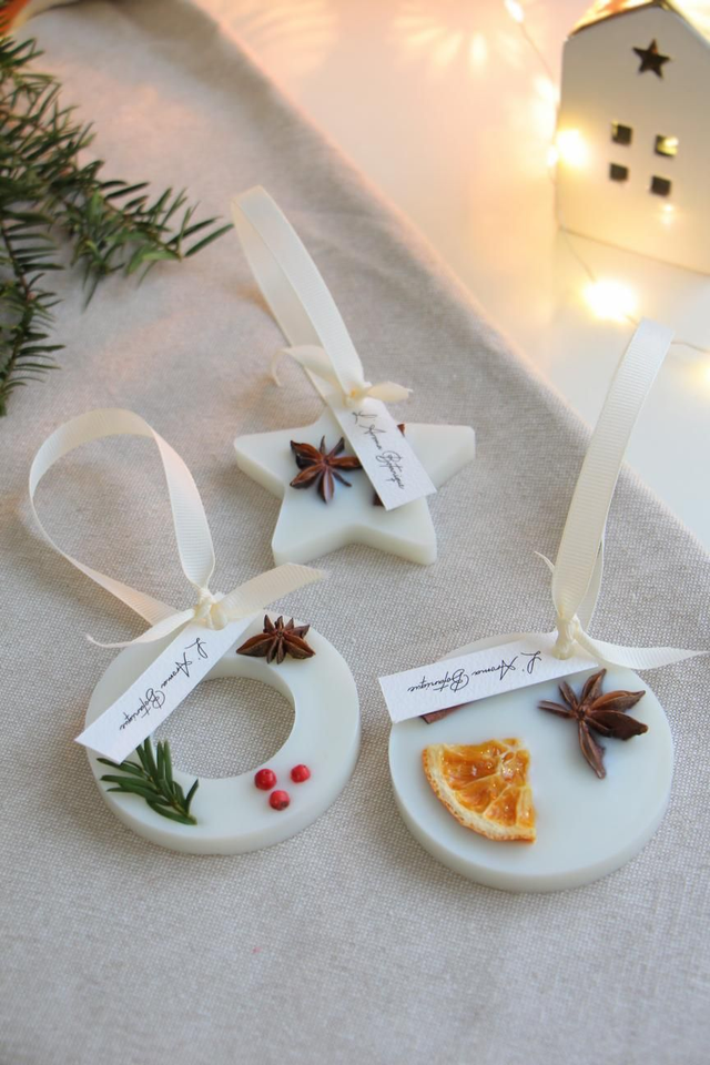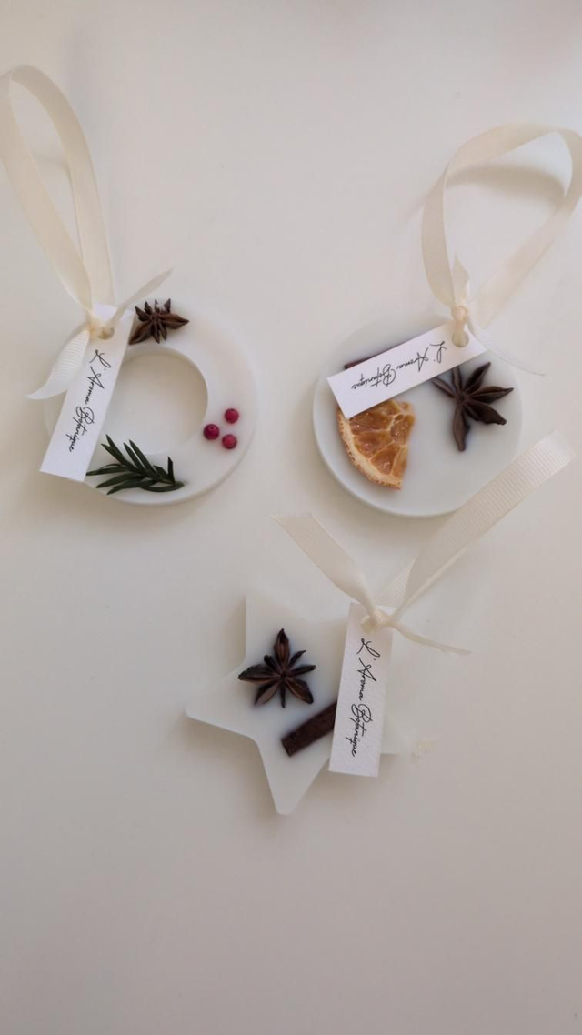 Créés à base de cire végétale de noix de coco, ces médaillons sont délicatement parfumés et décorés à la main avec des éléments naturels secs : anis étoilé, tranche d’orange, sapin, baies… Chaque pièce est unique et apporte une touche élégante et chaleureuse à votre intérieur.